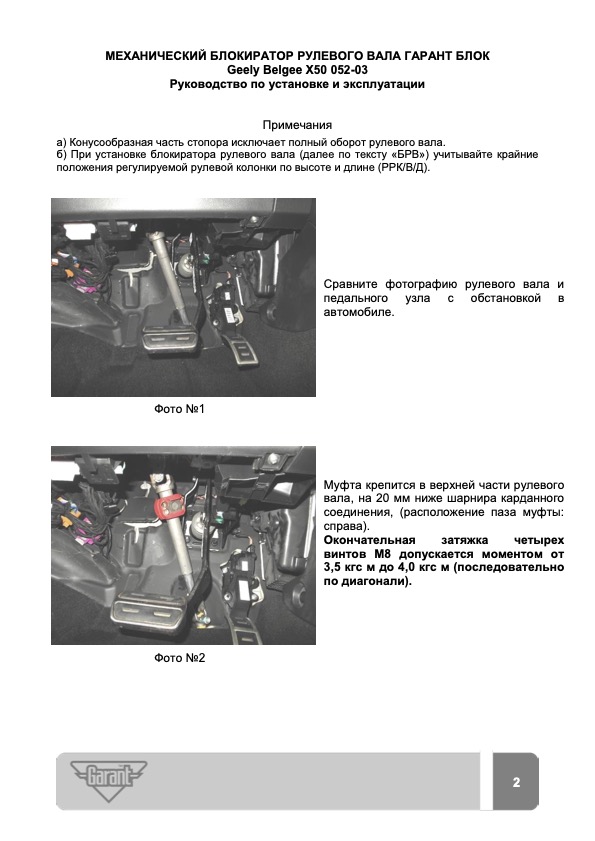 Блокиратор рулевого вала Гарант Блок Люкс 052.X/f для BELGEE X50 c 2023 г. РВ-ф29,6 - это надежный блокиратор рулевого вала, защищающий автомобиль от всех известных способов вскрытия.