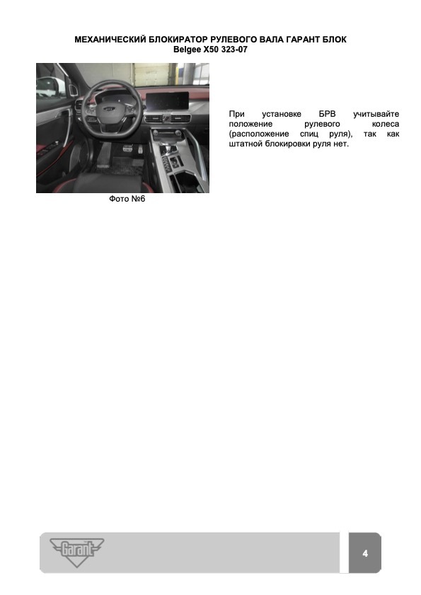 Блокиратор рулевого вала Гарант Блок Люкс 323.X/f для BELGEE X50 c 2023 г. РВ-ф30 мм - это надежный блокиратор рулевого вала, защищающий автомобиль от всех известных способов вскрытия.