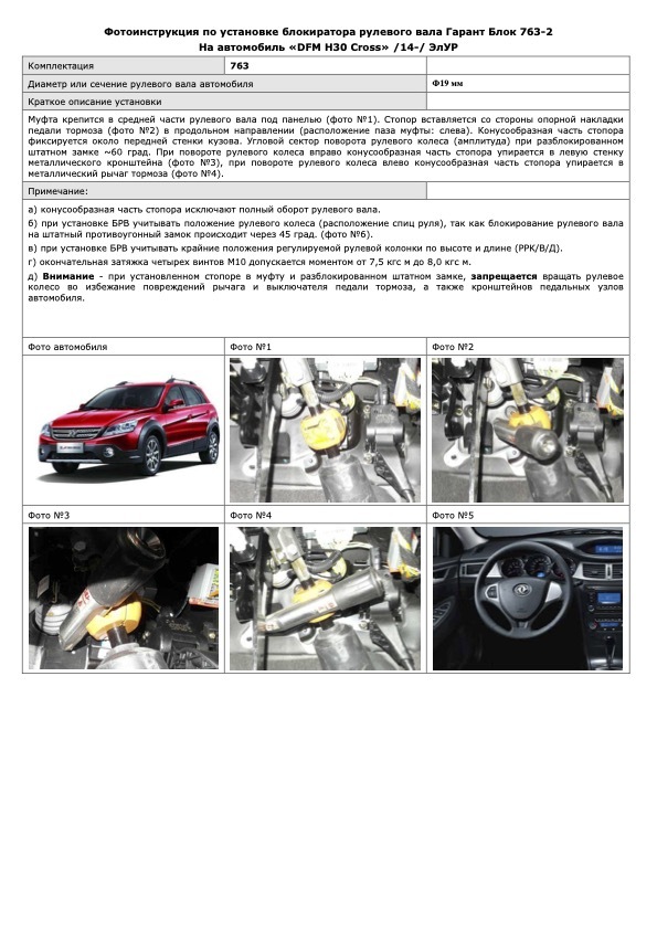 Блокиратор рулевого вала Гарант Блок Люкс 763.X/f для DONGFENG H30Cross,S30 c 2014 по 2018 г. ЭлУР - это надежный блокиратор рулевого вала, защищающий автомобиль от всех известных способов вскрытия.