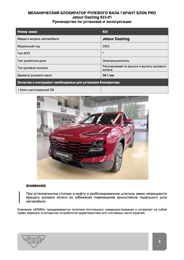 Гарант Блок PRO для JETOUR T2 c 2023 г. РВ-ф30,7мм – это усиленный блокиратор рулевого вала, собравший в себе новейшие инженерные решения. Благодаря высокому уровню криминальной стойкости успешно сопротивляется всем известным механическим способам воздействия.