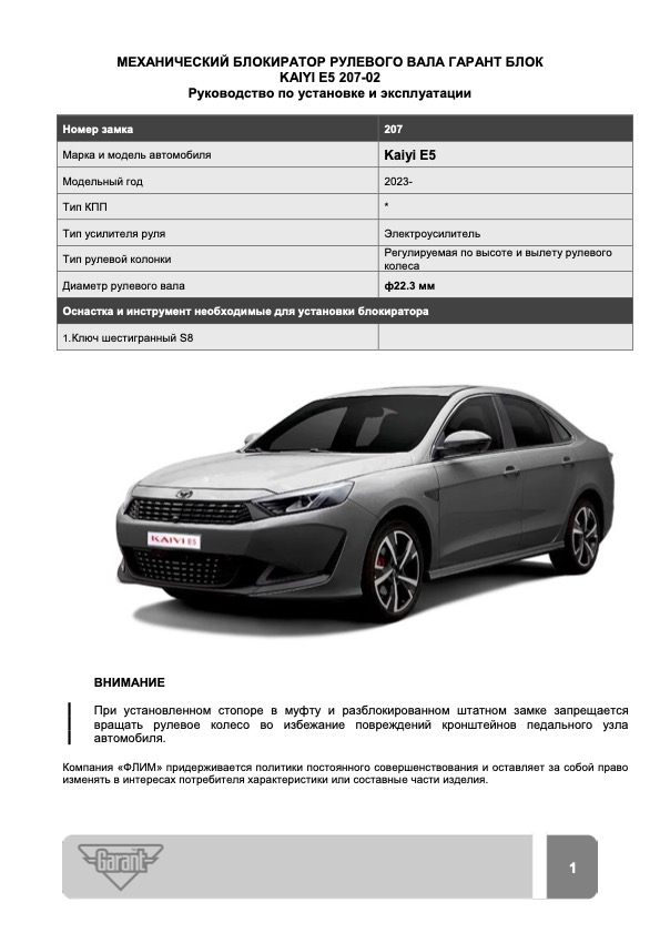 «Гарант Блок PRO» для KAIYI E5 c 2023 г. РВ-ф22,3мм – это усиленный блокиратор рулевого вала, собравший в себе новейшие инженерные решения. Благодаря высокому уровню криминальной стойкости успешно сопротивляется всем известным механическим способам воздействия.