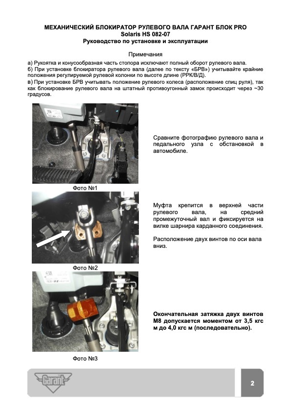 «Гарант Блок PRO» для SOLARIS HS c 2024 г. – это усиленный блокиратор рулевого вала, собравший в себе новейшие инженерные решения. Благодаря высокому уровню криминальной стойкости успешно сопротивляется всем известным механическим способам воздействия.